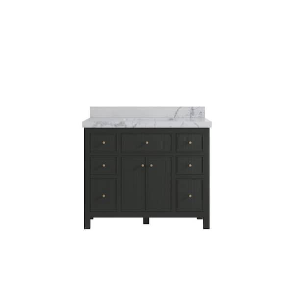 Sonoma 42 in. Single Sink Freestanding Black Top Bath Vanity with Venatino Quartz Top Unassembled