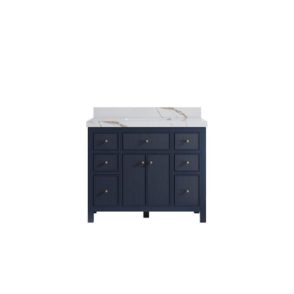 Sonoma 42 in. Single Sink Freestanding Navy Blue Bath Vanity with Calacatta Gold Quartz Top Unassembled
