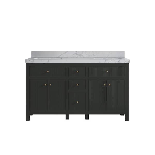 Sonoma 60 in. Double Sink Freestanding Black Top Bath Vanity with Venatino Quartz Top Unassembled
