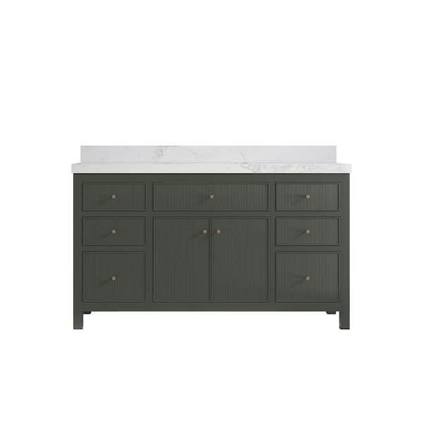 Sonoma 60 in. W x 22 in. D x 36 in. H Single Sink Bath Vanity in Pewter Green with 2" Calacatta Nuvo Top