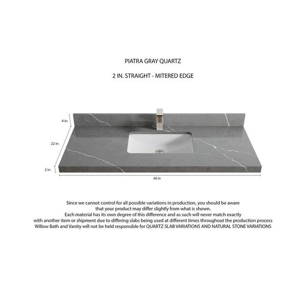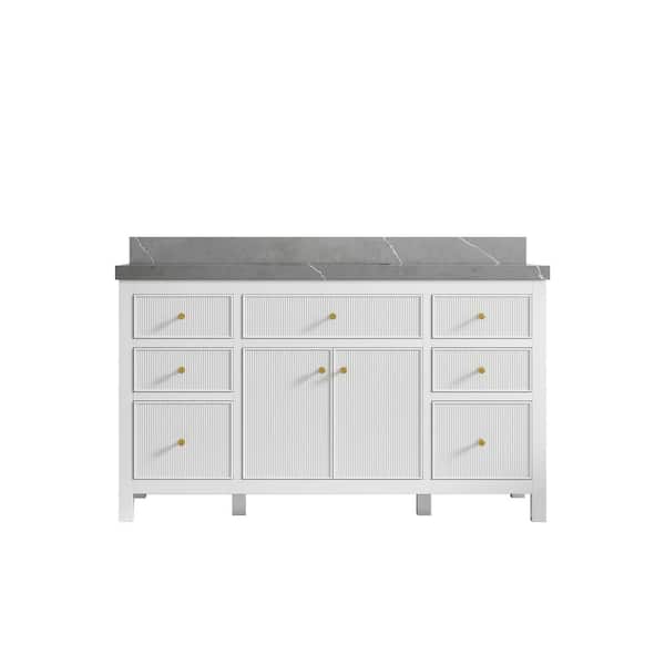 Sonoma 60 in. W x 22 in. D x 36 in. H Single Sink Bath Vanity in White with 2" Piatra Quartz Top