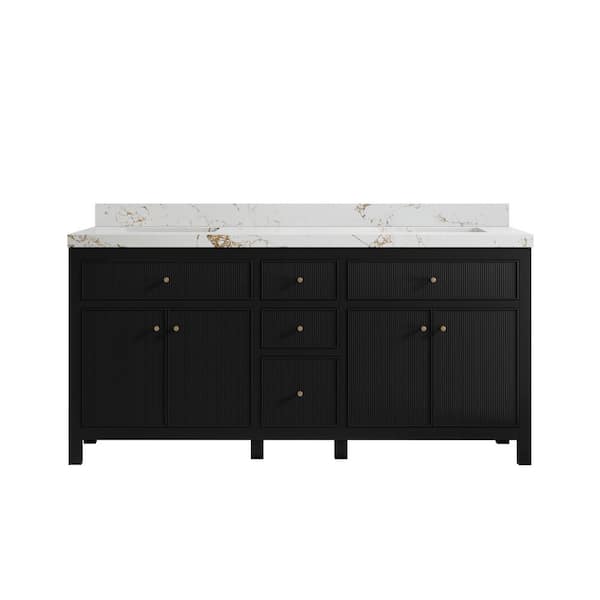Sonoma 72 in. Double Sink Freestanding Black Bath Vanity with Viola Gold Quartz Top Unassembled