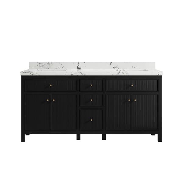 Sonoma 72 in. Double Sink Freestanding Black Bath Vanity with Viola Night Quartz Top Unassembled