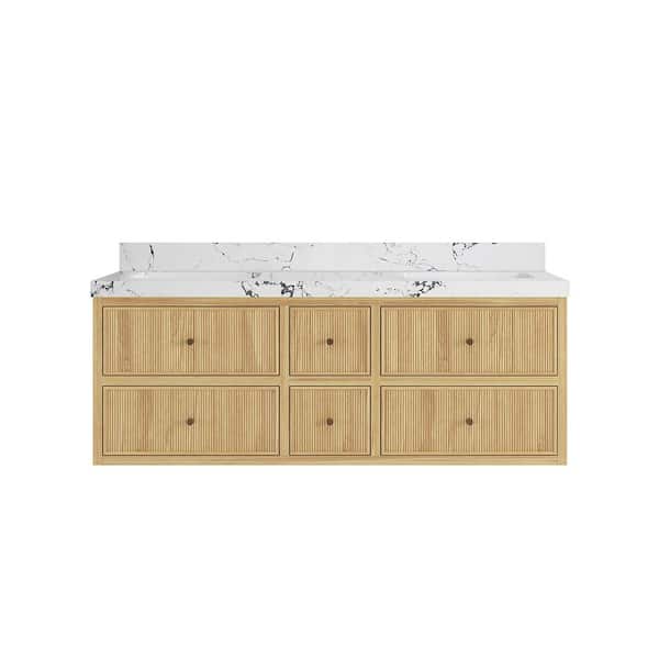 Sonoma Floating 60 in. H Double Sink Freestanding Light Natural Bath Vanity with Viola Night Quartz Top Unassembled