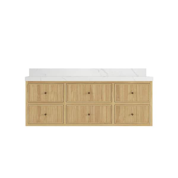 Sonoma Floating 60 in. H Single Sink Freestanding Light Natural Bath Vanity with Calacatta Laza Qt. Top Unassembled