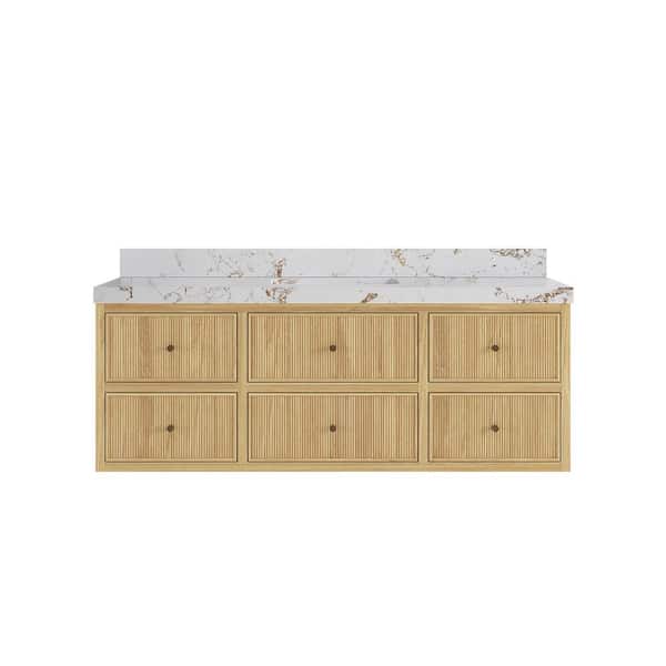 Sonoma Floating 60 in. H Single Sink Freestanding Light Natural Bath Vanity with Viola Gold Quartz Top Unassembled