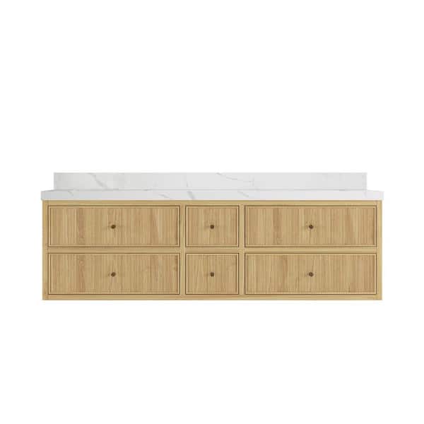 Sonoma Floating 72 in. H Double Sink Freestanding Light Natural Bath Vanity with Calacatta Laza Qt. Top Unassembled