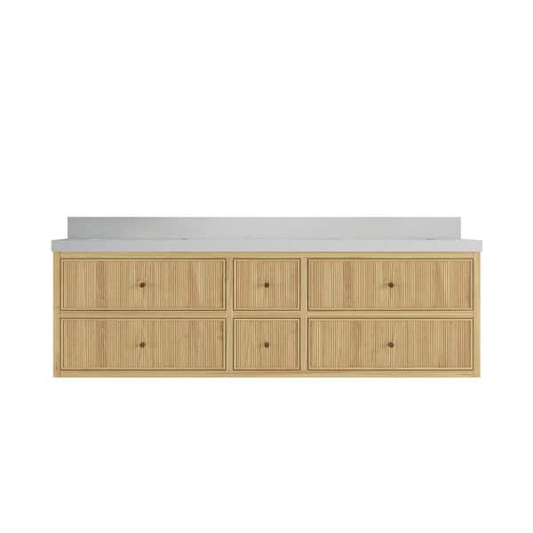 Sonoma Floating 72 in. H Double Sink Freestanding Light Natural Bath Vanity with Carrara Qt. Top Unassembled