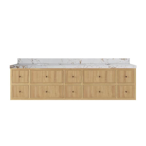 Sonoma Floating 84 in. H Double Sink Freestanding Light Natural Bath Vanity with Viola Gold Qt. Top Unassembled