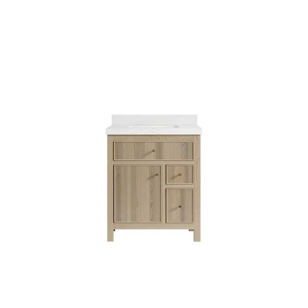 Sonoma Oak 30 in. W x 22 in. D x 36 in. H Bath Vanity in White Oak with 2 in. Empira Quartz Top