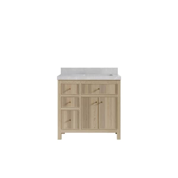 Sonoma Oak 36 in. W x 22 in. D x 36 in. H Right Offset Sink Bath Vanity in White Oak with 2 in. Pearl Gray Quartz Top