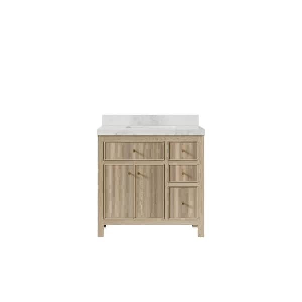 Sonoma Oak 36 in. W x 22 in. D x 36 in. H Single Sink Bath Vanity Center in White Oak with 2 in. Calacatta Nuvo Top