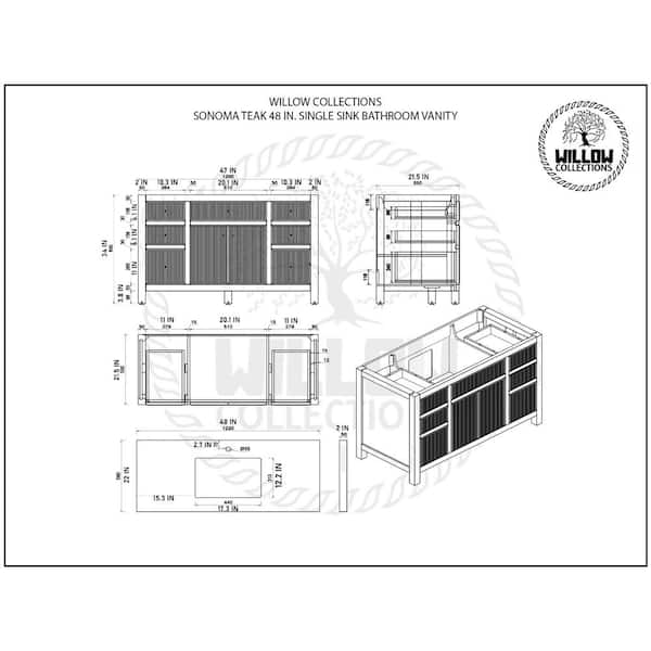 Sonoma Teak 48 in. W x 22 in. D x 36 in. H Bath Vanity in Dark Teak with 1.5" White Quartz Top