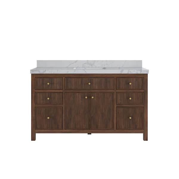 Sonoma Teak 60 in. Single Sink Freestanding Dark Walnut Bath Vanity with Venatino Quartz Top Unassembled