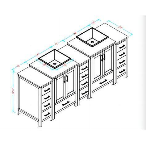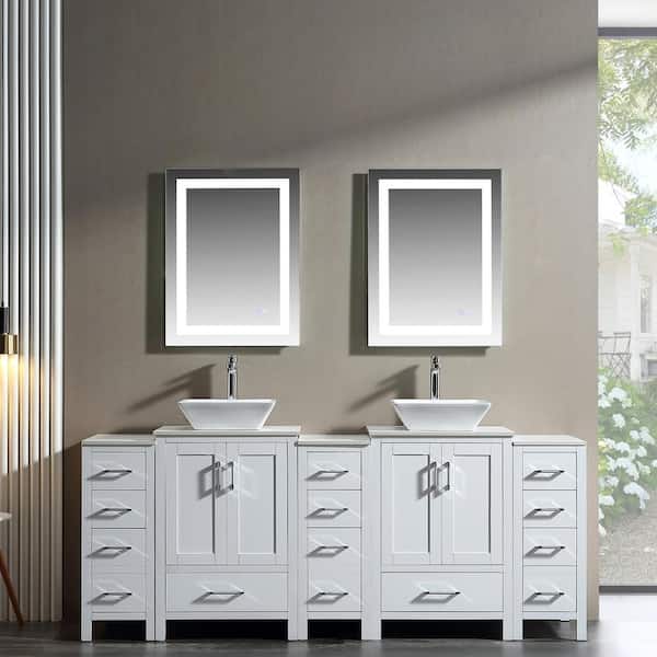 Wilton 84 in. W x 22 in. D x 38.7 in. H Wood Bathroom Vanity Set in White with White Marble Top with Vessel Sink