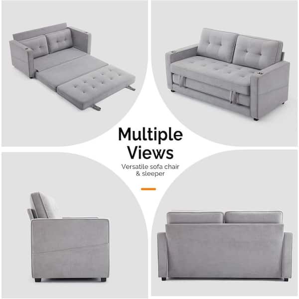 63.78 in. Light Gray Chenille Twin Size Sofa Bed