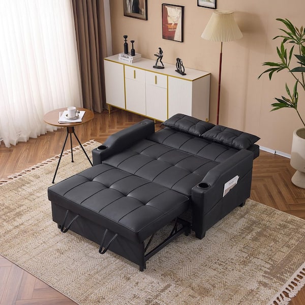 70.47 in. Black Cat-Scratch Leather Twin Size Sofa Bed