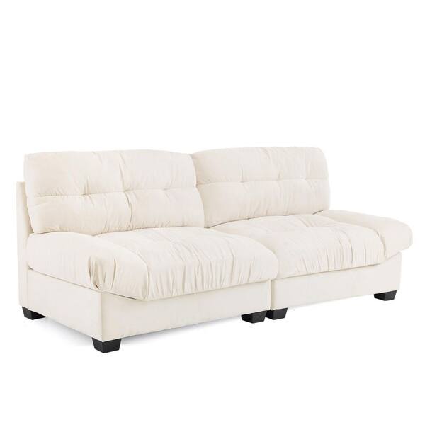 80.31 in. Beige Suede 2-Seater Loveseat with Removable