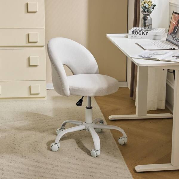 Cotton and Linen Fabric Swivel Office Chair Task Chair in Light Gray with Armless