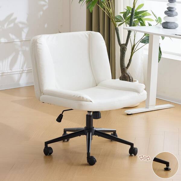 Faux Leather Fabric Swivel Cross-Legged Task Chair in Pure White with Armless