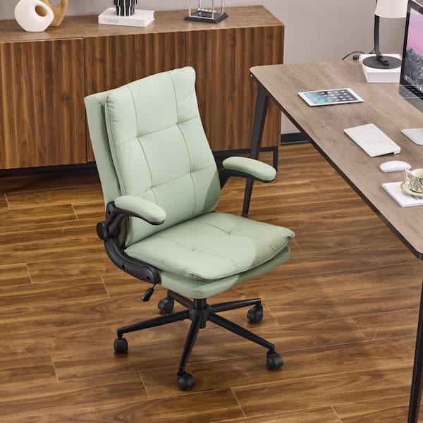Faux Leather Fabric with Foot Pegs Swivel Adiustable Height Task Chair in Light Green with Adjustable Arms