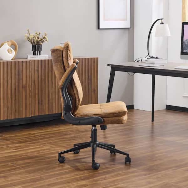 Faux Leather Fabric with Foot Pegs Swivel Adiustable Height Task Chair in Retro Brown with Adjustable Arms