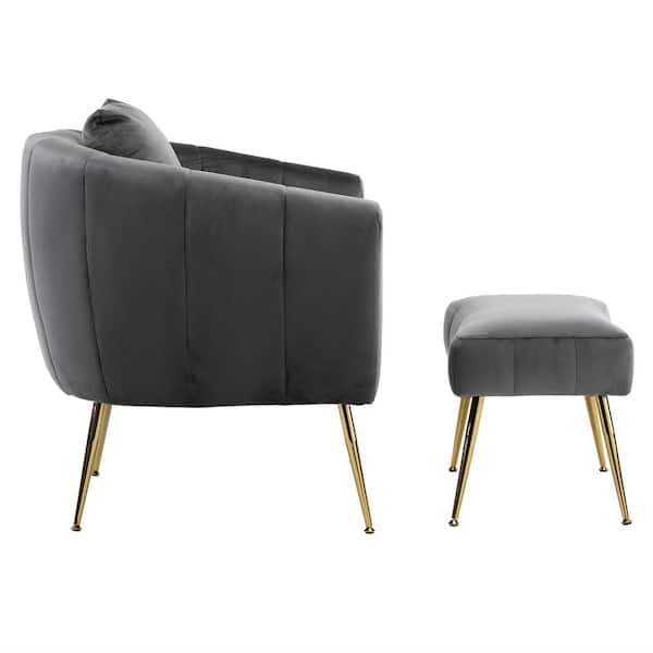 Gray Velvet Accent Chair with Ottoman