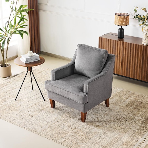 Light Gray Velvet Arm Chair with High Armrest T-Shaped Seat Cushion Solid Wood Legs