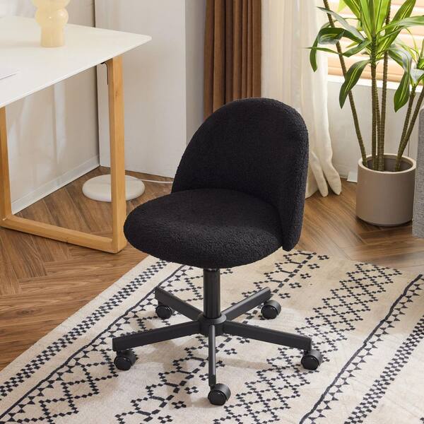 Teddy Fleece Fabric Swivel Task Chair in Black with Armless