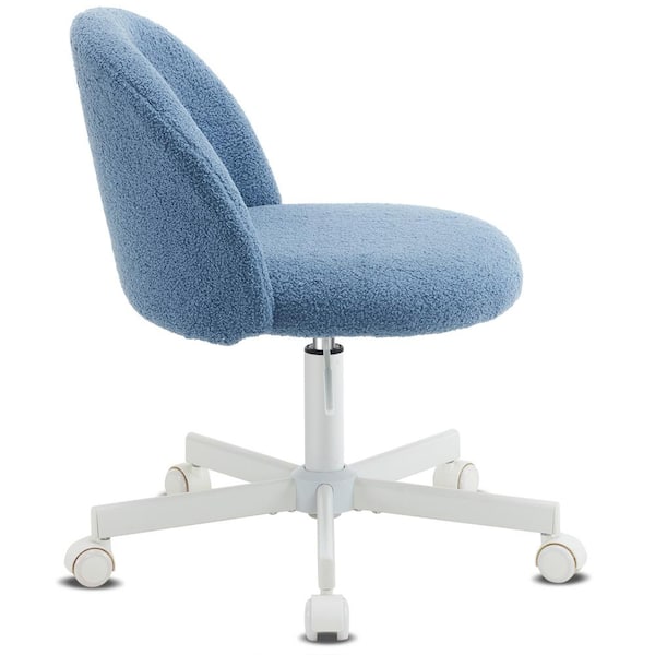 Teddy Fleece Velvet Seat Liftable Swivel Office Chair in Blue Armless