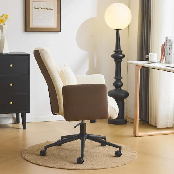 Velvet Fabric Adjustable Height Swivel Task Chair in Beige with Spread Arms