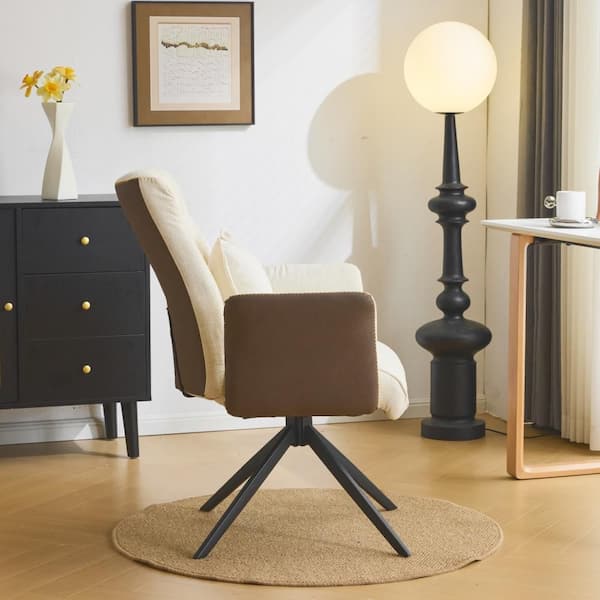 Velvet Fabric Swivel Adiustable Height High Leg Task Chair in Beige with Spread Arms