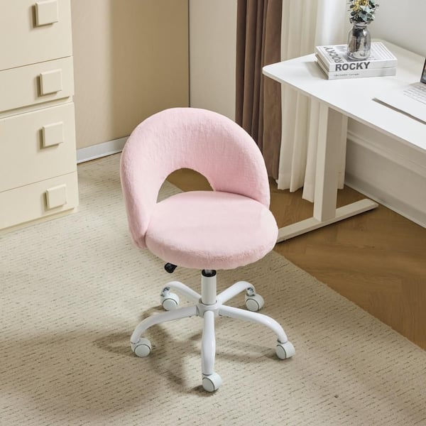 Velvet Fabric Swivel Office Chair Task Chair in Pink with Armless