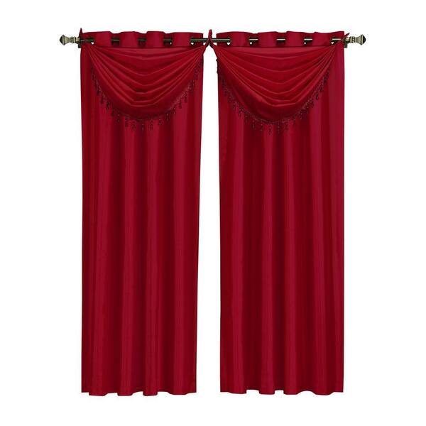 36 in. W x 37 in. L Jane Faux Silk Grommet Waterfall Window Valance in Burgundy