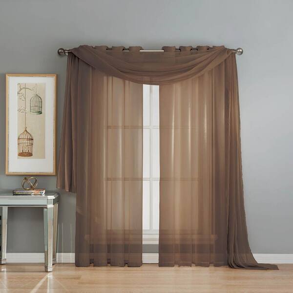 Chocolate Extra Wide Grommet Sheer Curtain - 56 in. W x 90 in. L