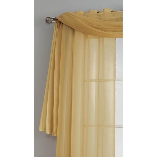 Diamond Sheer Voile 56 in. W x 216 in. L Curtain Scarf in Gold