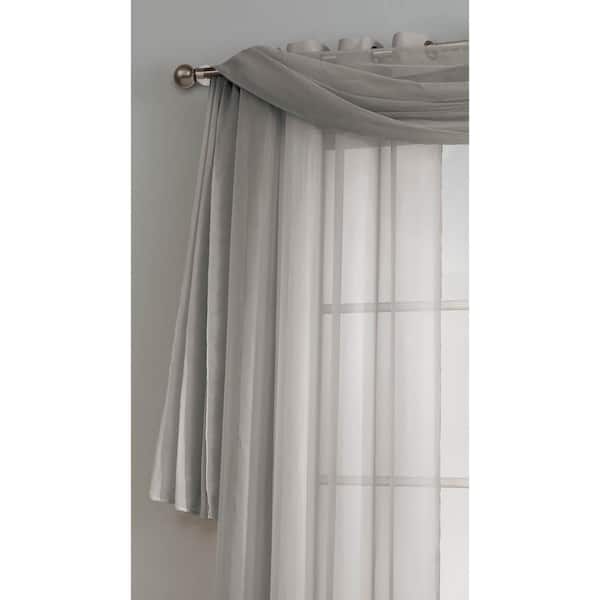 Diamond Sheer Voile 56 in. W x 216 in. L Curtain Scarf in Gray