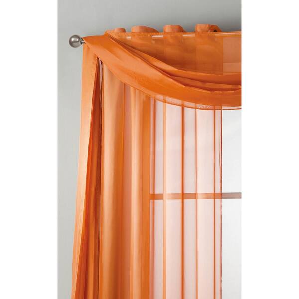 Diamond Sheer Voile 56 in. W x 216 in. L Curtain Scarf in Orange