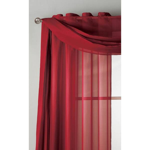 Diamond Sheer Voile 56 in. W x 216 in. L Curtain Scarf in Red