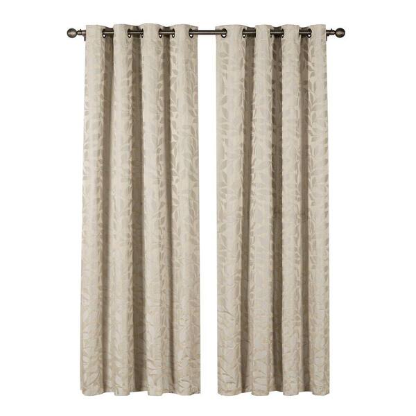 Ivory Leaf Grommet Room Darkening Curtain - 54 in. W x 96 in. L (Set of 2)