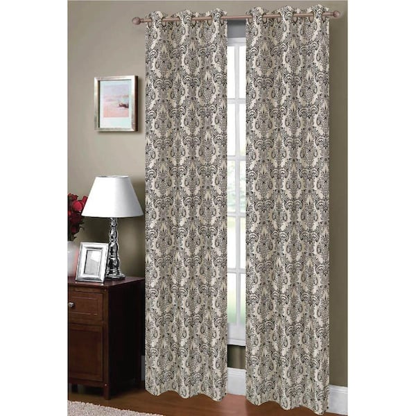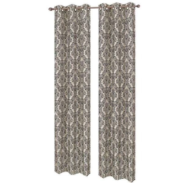 Semi-Opaque Adelle Flocked Faux Silk 84 in. L Grommet Curtain Panel Pair, Ivory/Black (Set of 2)