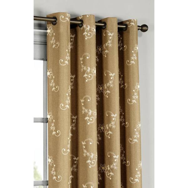 Semi-Opaque Ashley Embroidered Faux Linen Extra Wide 84 in. L Grommet Curtain Panel Pair, Natural (Set of 2)
