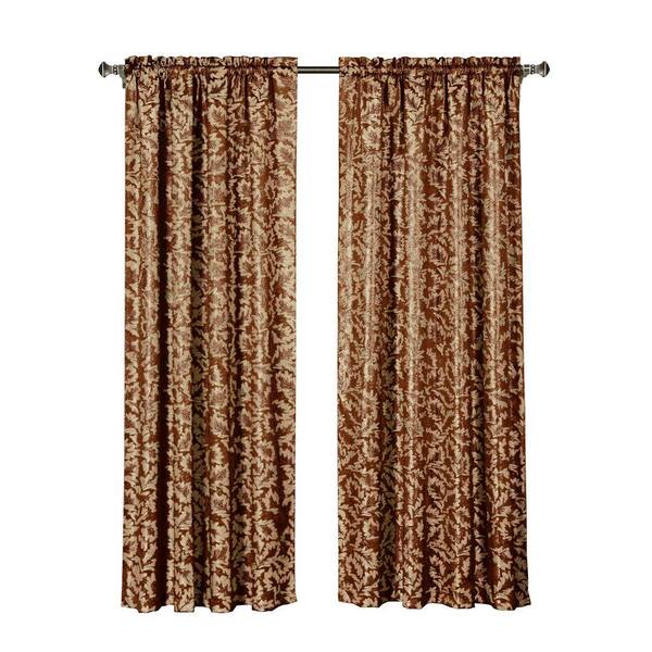 Semi-Opaque Dawson Shimmering Leaf 54 in. W x 84 in. L Rod Pocket Extra Wide Curtain Panel in Rust