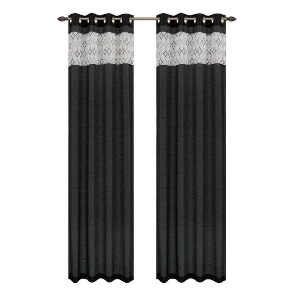 Semi-Opaque Felicity Embroidered Faux Silk 54 in. W x 84 in. L Grommet Extra Wide Curtain Panel in Black
