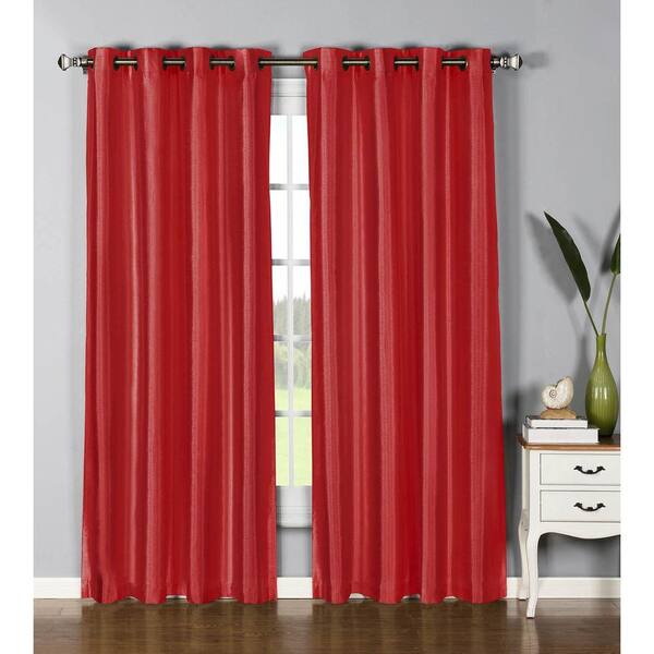 Semi-Opaque Jane Faux Silk 84 in. L Grommet Curtain Panel Pair, Crimson (Set of 2)