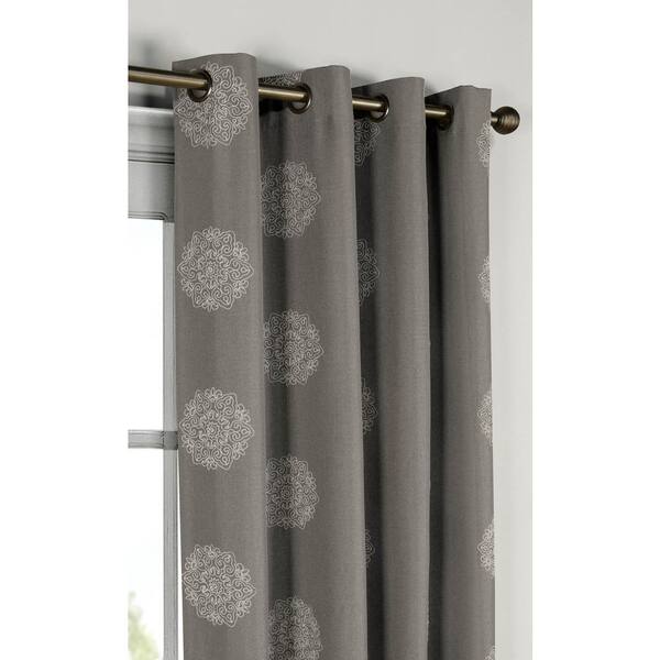 Semi-Opaque Venice Embroidered Faux Linen Extra Wide 96 in. L Grommet Curtain Panel Pair, Charcoal (Set of 2)