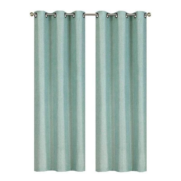 Semi-Opaque Willow Textured Woven 96 in. L Grommet Curtain Panel Pair, Seafoam (Set of 2)