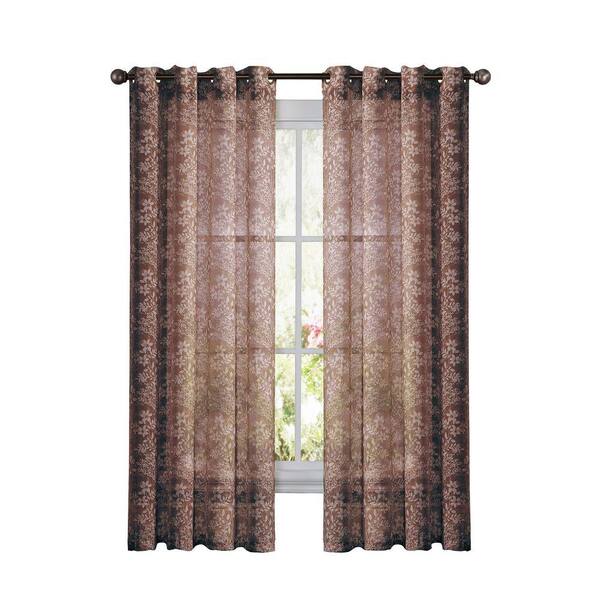 Sheer Botanica Faux Linen 54 in. W x 84 in. L Semi-Sheer Grommet Extra Wide Curtain Panel in Coffee