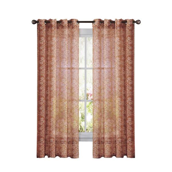Sheer Botanica Faux Linen 54 in. W x 84 in. L Semi-Sheer Grommet Extra Wide Curtain Panel in Rust