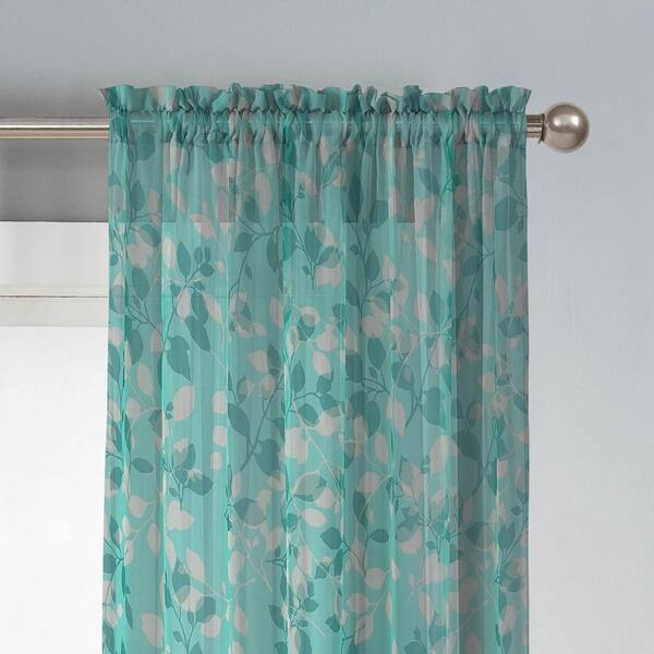 Sheer Pinehurst Printed 54 in. W x 84 in. L Rod Pocket Extra Wide Curtain Panel in Sheer Aqua